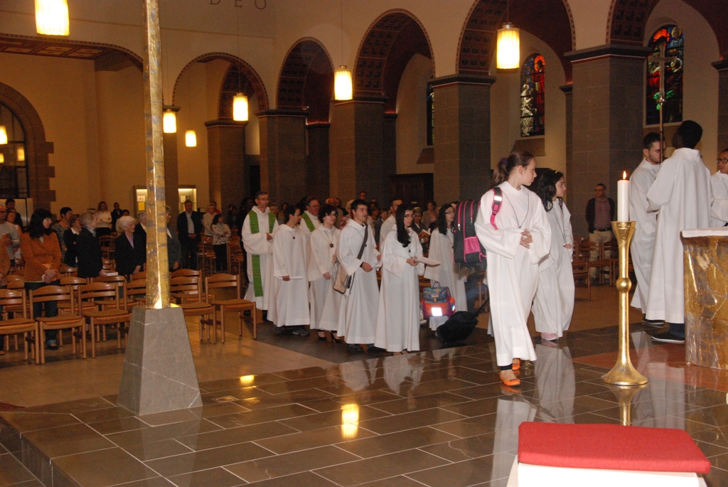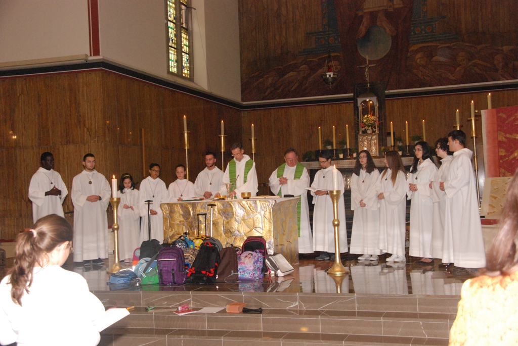 déposer leurs cartables devant l'autel. |